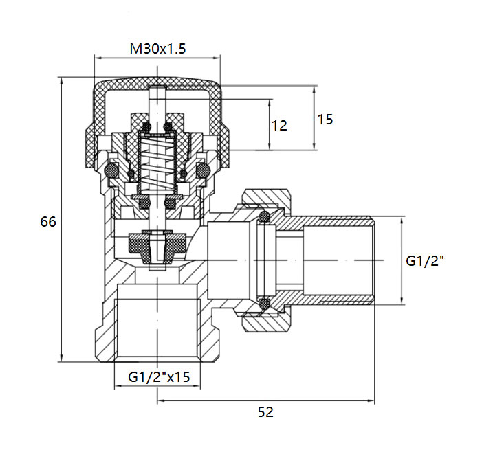 Riko thermostatische radiatorventiel 1/2''x15mm haaks mat-zwart