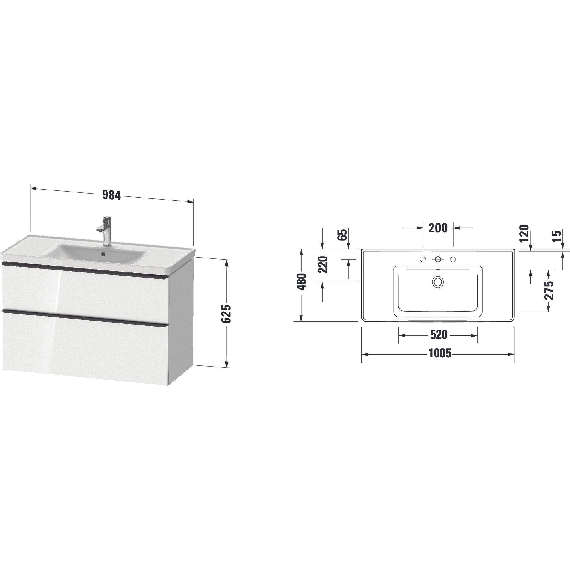 Duravit D-Neo meubelset m. wastafelonderbouwkast m. 2 laden m. softclose 100x20x48cm incl. wastafel wit hoogglans