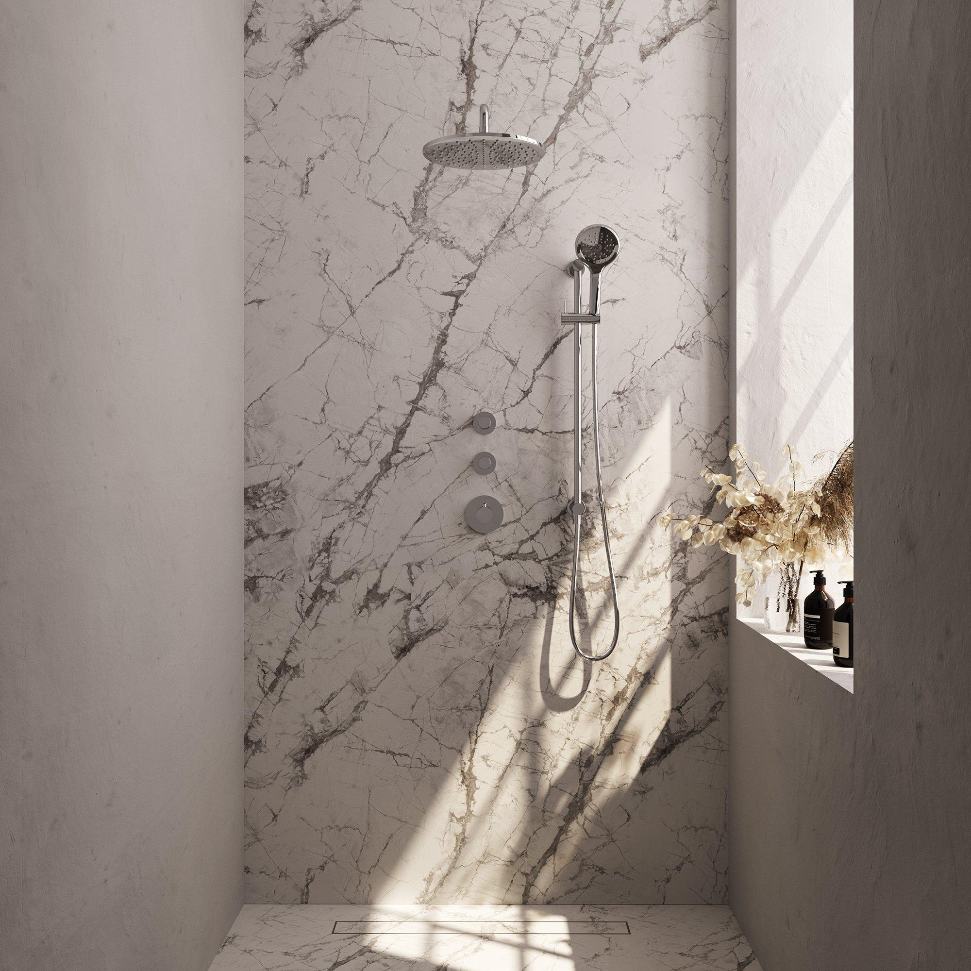 De Brauer Chrome Edition Regendoucheset straalt elegantie uit dankzij zijn verfijnde ontwerp en hoogwaardige afwerking. De gladde knoppen zorgen voor een moeiteloze bediening, terwijl de chroomafwerking een vleugje glamour toevoegt aan je badkamer. De combinatie van functionaliteit en elegantie maakt deze set een must-have voor wie op zoek is naar een stijlvolle upgrade voor hun douche-ervaring.