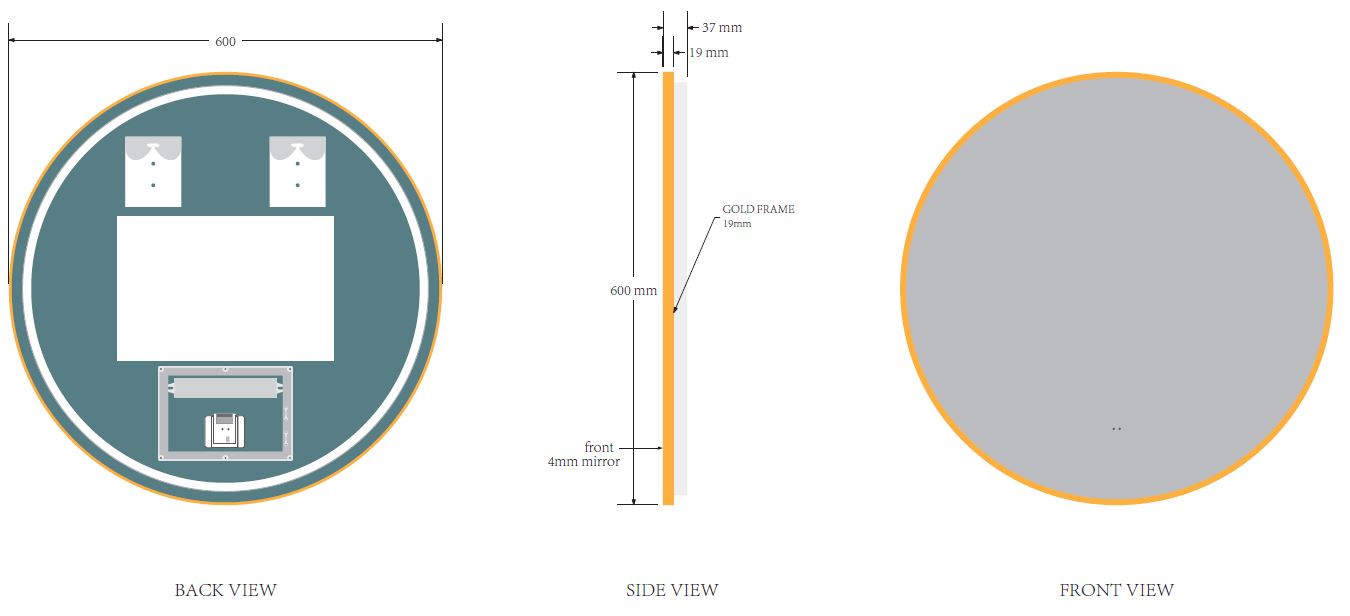 Saniclass Badkamerspiegel - rond - diameter 60cm - indirecte LED verlichting - spiegelverwarming - infrarood schakelaar - mat goud