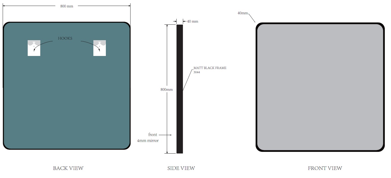 Saniclass Retro Line 2.0 Square Spiegel - 80x80cm - vierkant - afgerond - frame - mat zwart