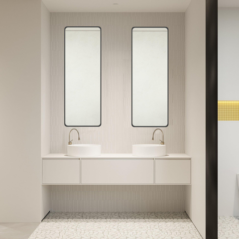 De Saniclass Retro Line 2.0 spiegel straalt een tijdloze elegantie uit die moeiteloos samengaat met verschillende badkamerstijlen. Het rechthoekige ontwerp met afgeronde hoeken creëert een zachte en verfijnde uitstraling. Het mat zwarte frame voegt een eigentijds element toe, waardoor de spiegel een statement piece wordt in jouw badkamer.