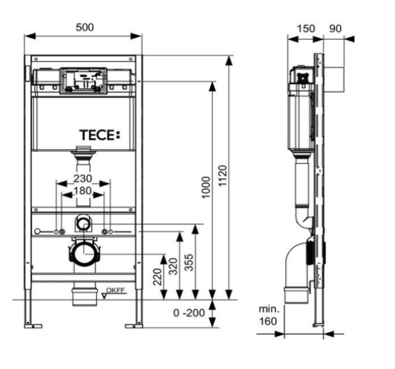 TECEprofil wc-inbouwframe met Uni-spoelkast, bouwhoogte 1120 mm