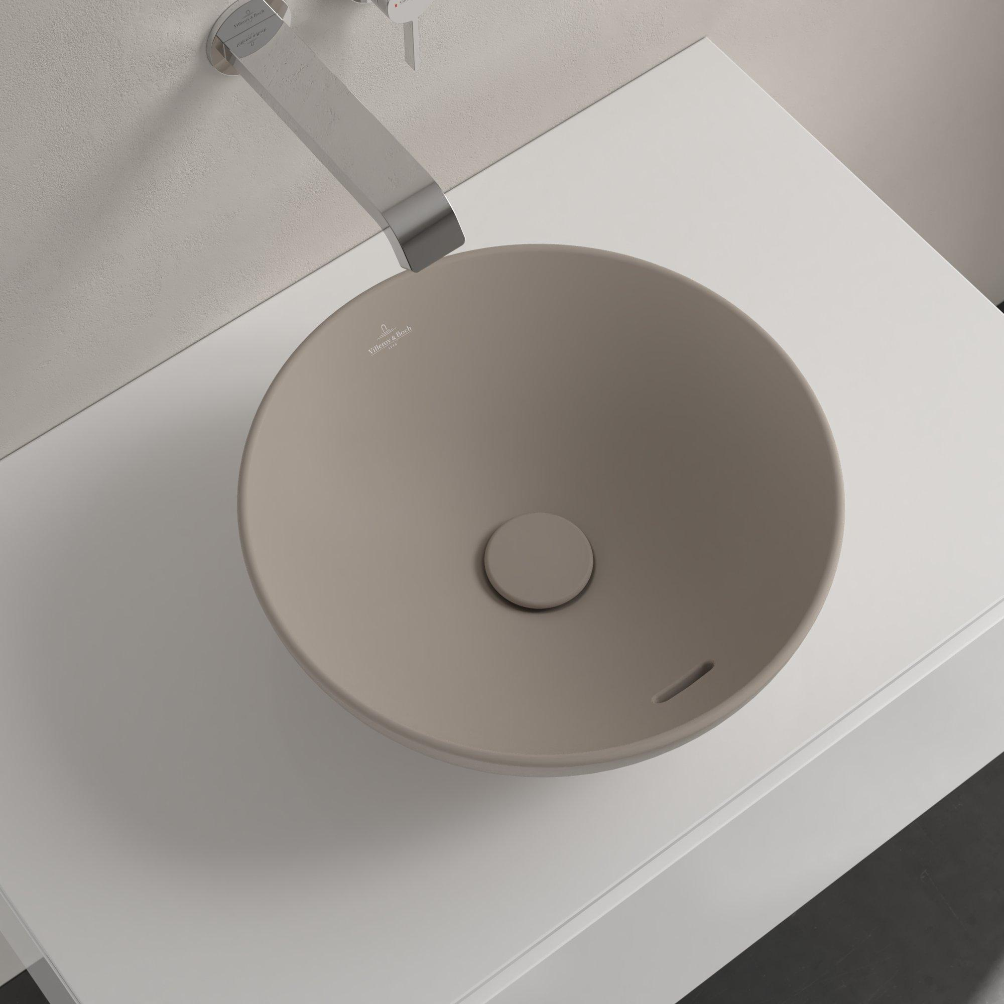 Villeroy & Boch Loop & friends opzetwastafel 38cm rond met overloop CeramicPlus almond