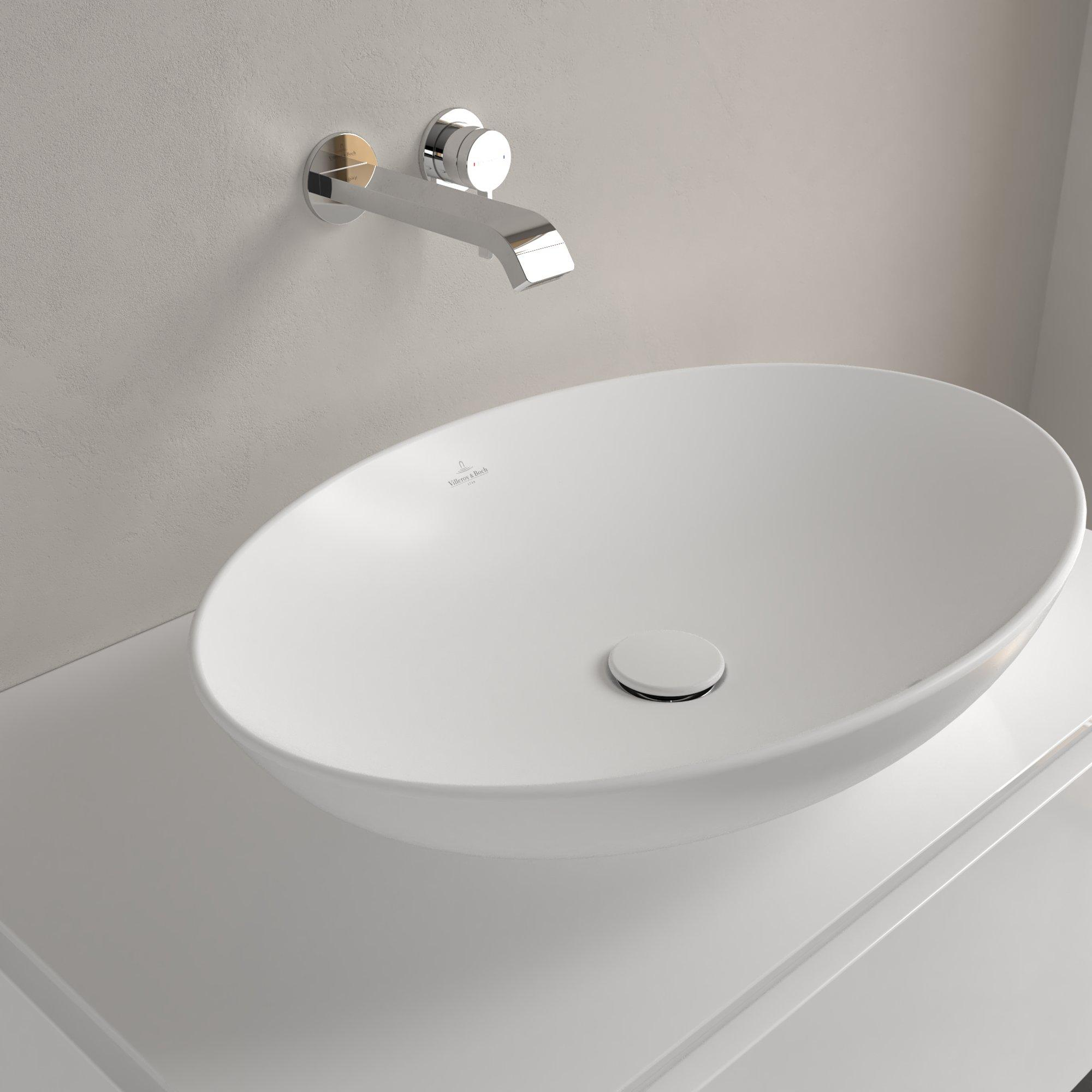 Villeroy & Boch Loop & Friends Opzetwastafel - 620 x 420 x 120 mat stone white (wit) CeramicPlus - met overloop