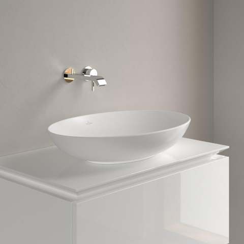 Villeroy & Boch Loop & Friends Opzetwastafel - 620 x 420 x 120 mat stone white (wit) CeramicPlus - met overloop SW644101