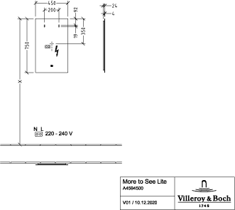 Villeroy & Boch More to see spiegel 45x75cm LED rondom 19,68W 2700-6500K