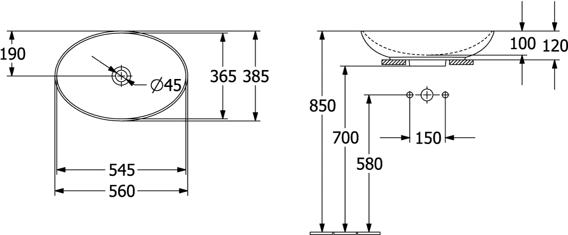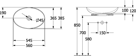 Villeroy & Boch Loop & friends opzetwastafel 56x38cm ovaal m/ov C+ stone white