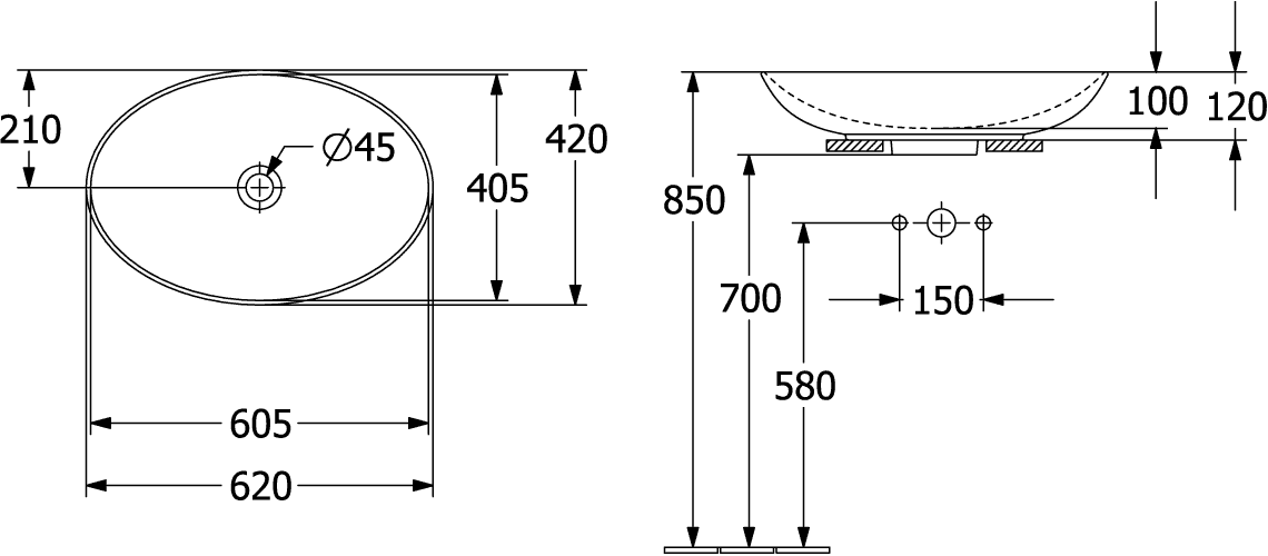 Villeroy & Boch Loop & friends opzetwastafel 62x42cm ovaal met overloop wit