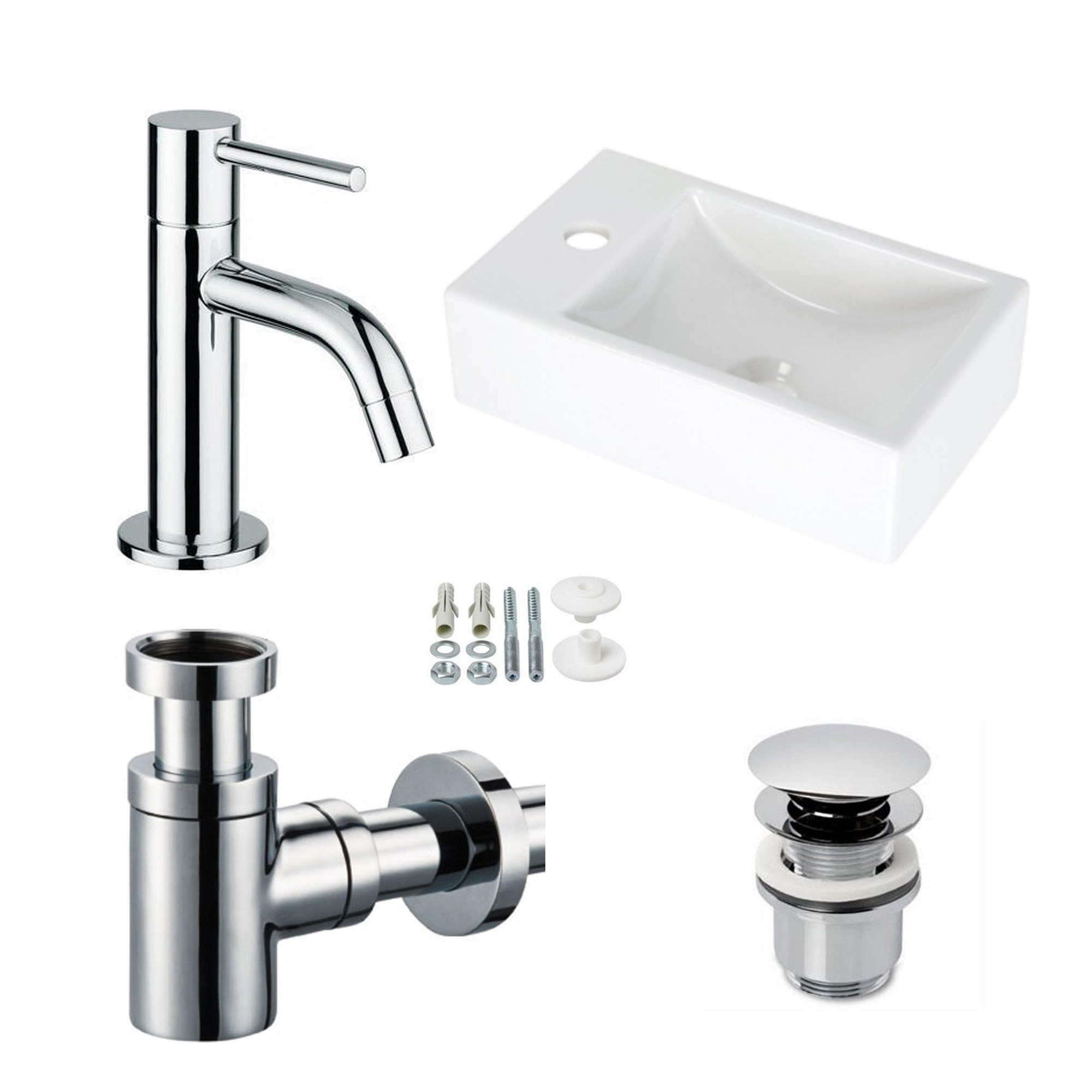 Plieger Houston fonteinset 37x23cm kraangat links met chrome koudwaterkraan, sifon en waste glans wit