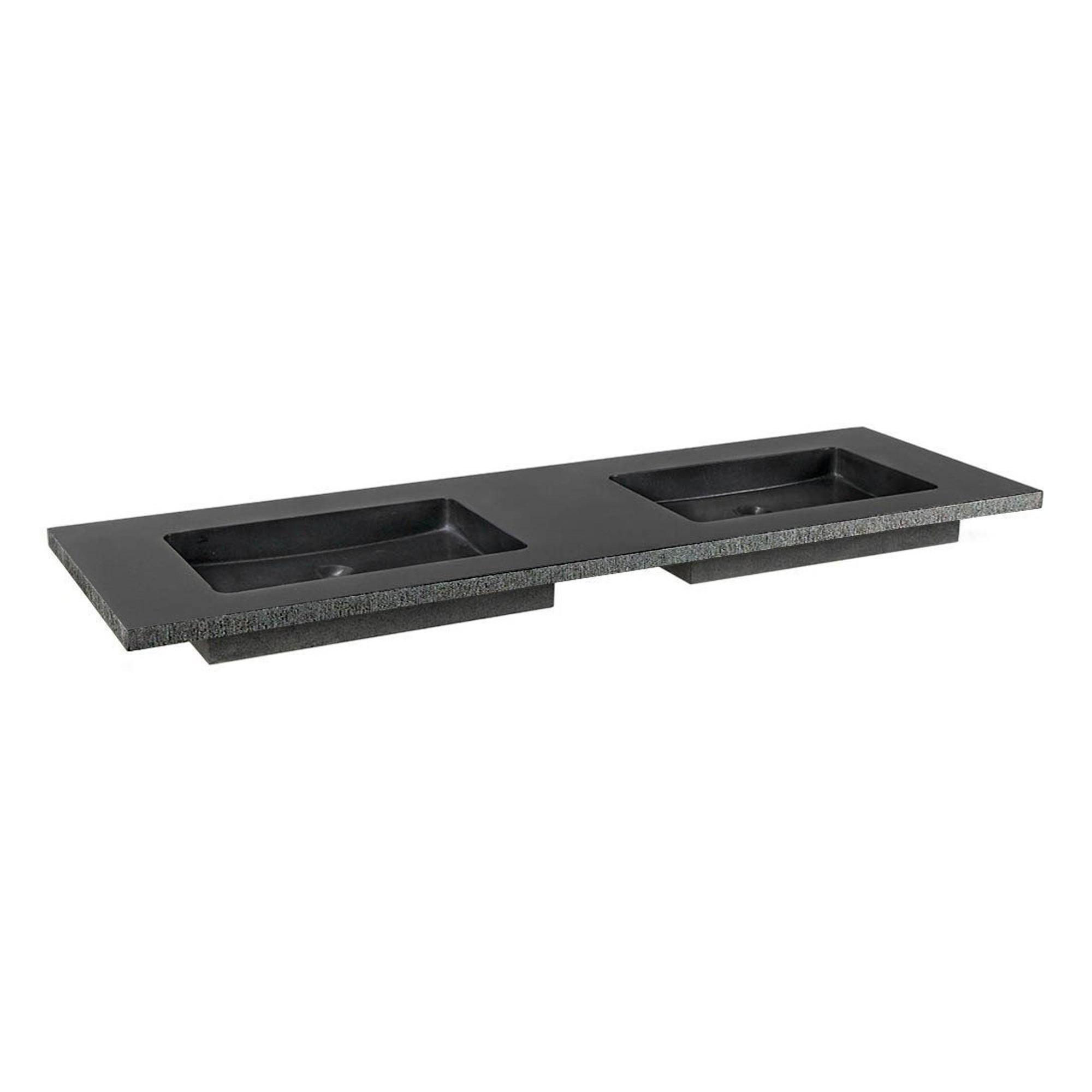 Forzalaqua Nova wastafel 140.5x51.5x9.5cm Rechthoek 2 kraangaten 2 wasbakken Natuursteen Graniet gezoet & gefrijnd SW647663