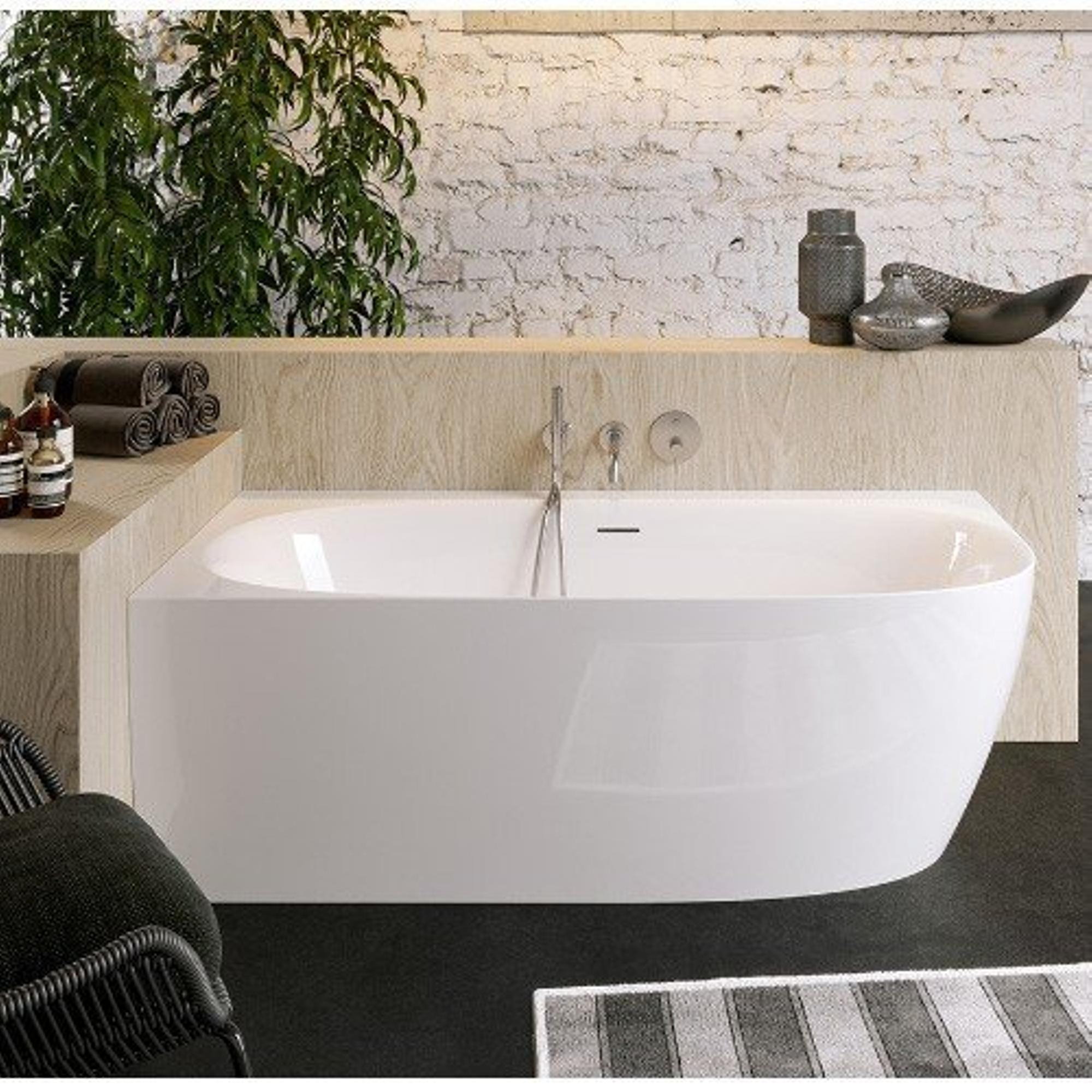 Dit hoekbad straalt stijl en klasse uit dankzij de strakke lijnen en het tijdloze ontwerp. De glanzend witte afwerking zorgt voor een frisse en moderne uitstraling die moeiteloos past bij verschillende badkamerstijlen. Het halvemaanvormige design creëert een unieke en elegante look die jouw badkamer naar een hoger niveau tilt.