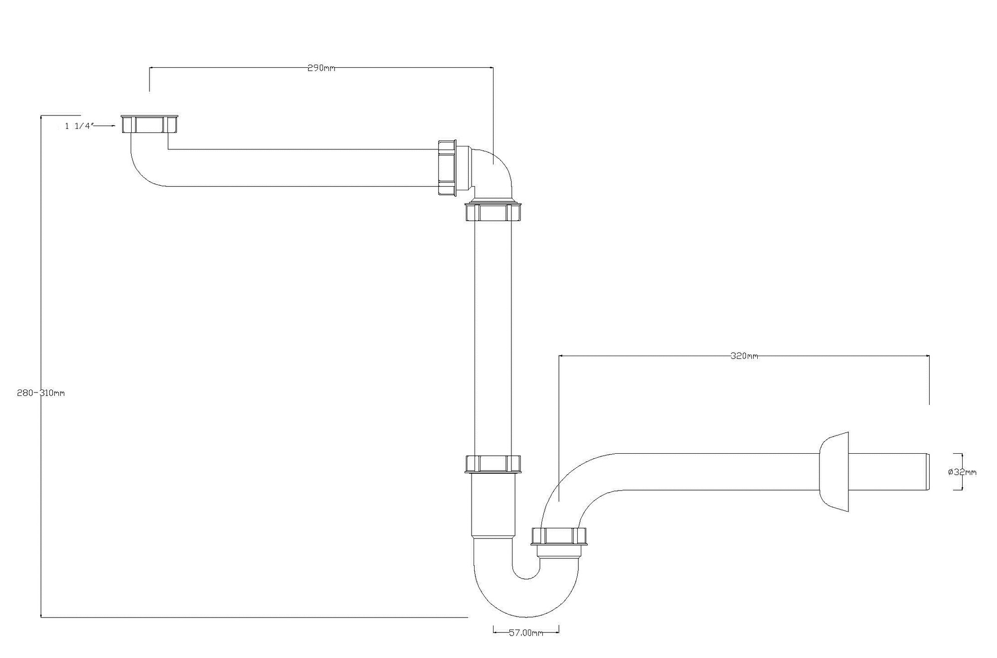 Compact en Efficiënt OntwerpDe Saniclass sifon heeft een afmeting van 5/4” bij een diameter van 32 mm, perfect passend voor standaard wastafels. Dankzij het slimme ontwerp neemt deze sifon minder ruimte in beslag, waardoor je meer vrijheid hebt voor het plaatsen van opslagoplossingen onder de wastafel.