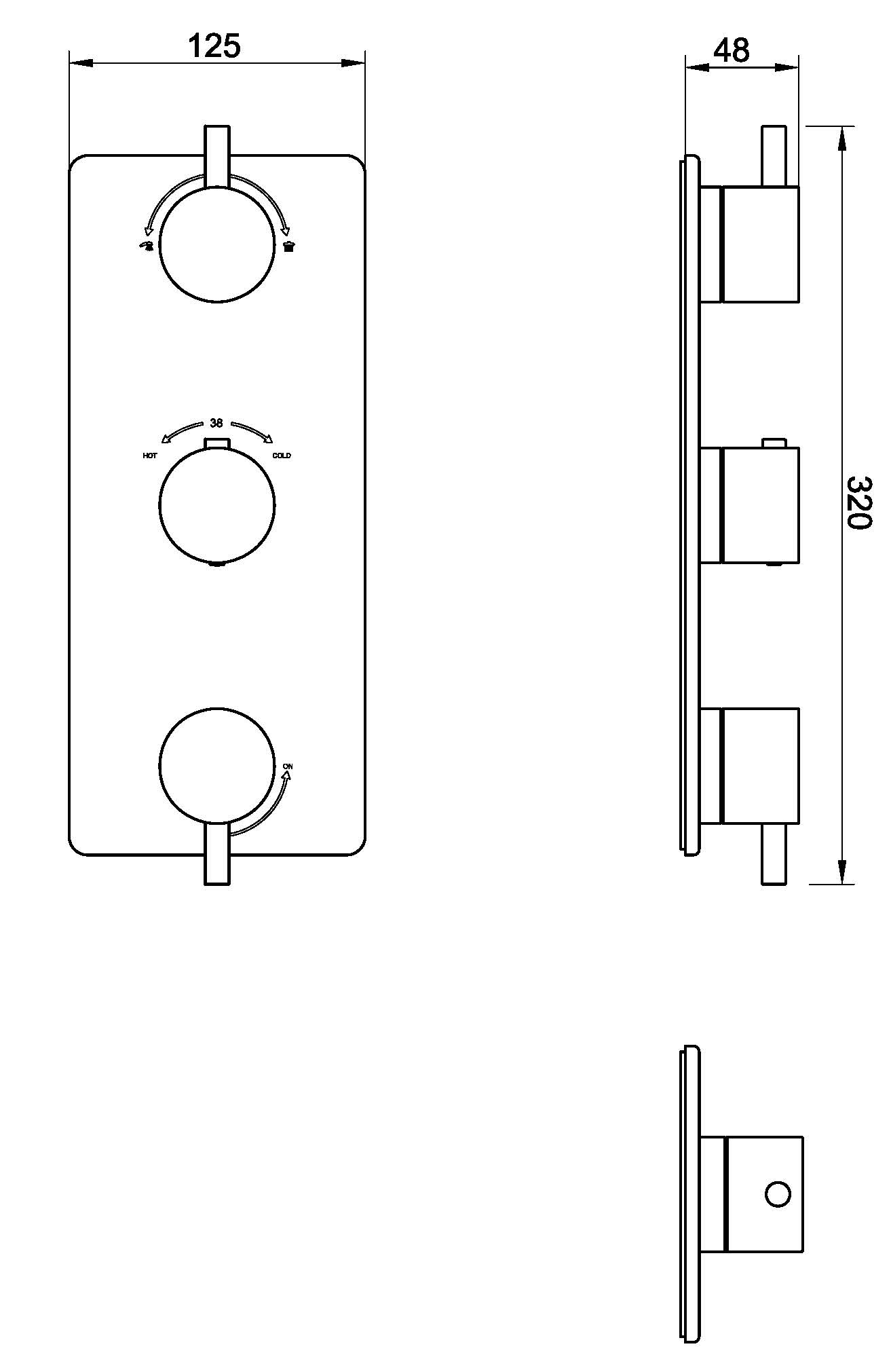 een thermostaatknop (hot/cold);