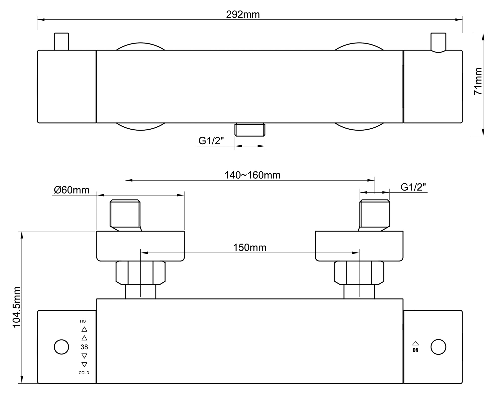 De kraan is gemaakt van messing. De hartafstand (de maat die gemeten wordt vanuit het midden van de aansluiting) is 15 cm. Deze kraan is voorzien van een waterbesparende functie en heeft een temperatuurblokkering bij 38°C. Om de temperatuur van het water verder te verhogen druk je de knop van de temperatuurblokkering in.