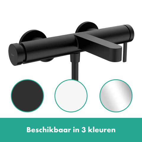 De Finoris ééngreeps badmengkraan (opbouwmontage) van hansgrohe heeft een verbluffende slanke vormgeving. Met zijn strakke vormgeving past hij mooi in het bad en hij wordt bediend met de ergonomische pingreep. Bij hansgrohe biedt ons buitengewone ontwerp ook praktische voordelen in het dagelijks leven. De drukknop aan de linkerzijde schakelt bijvoorbeeld intuïtief tussen de baduitloop en de douchekop (Select). De mat zwarte finish is ook makkelijk te reinigen dankzij de gladde vorm en behoudt jarenlang zijn expressieve karakter.
