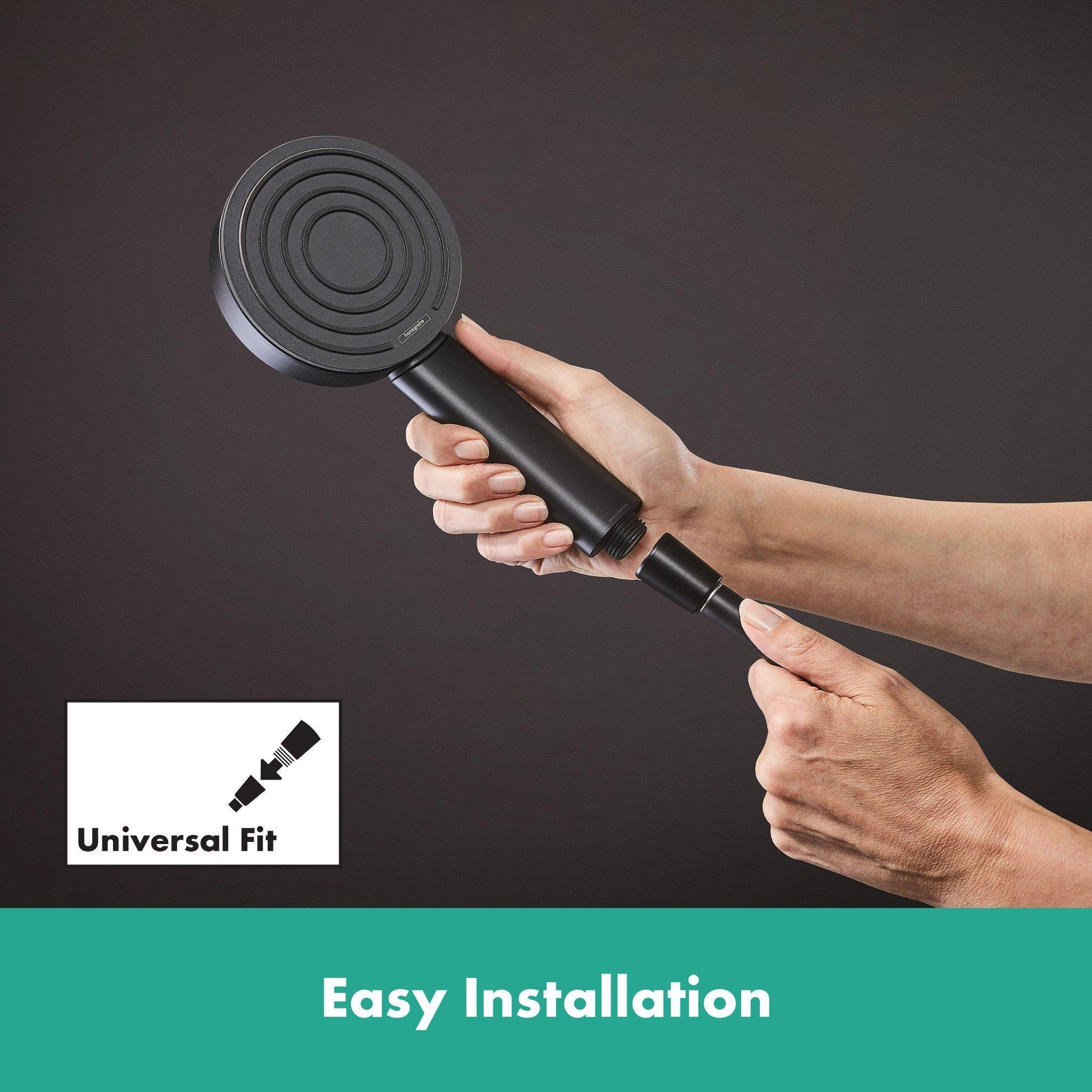 De ergonomische greep ligt comfortabel in de hand. Dankzij de interne watervoering wordt de buitenkant niet heet, zelfs niet tijdens lang douchen. Een uitspoelbare zeef zorgt voor een langdurige betrouwbare werking: Het vangt het vuil op voor het in de douchekop terecht kan komen. Nog een belangrijk voordeel: De expressieve finish in mat zwart is eenvoudig te reinigen en blijft altijd mooi.