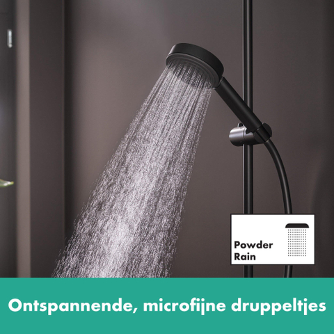 De hansgrohe straalsoort PowderRain omhult het lichaam zachtjes in een cocon van de fijnste waterdruppels. Ontspan met een sensuele waterervaring. Met hansgrohe Pulsify wordt uw douche een oase van dagelijkse herstel- en ontspanmomentjes.