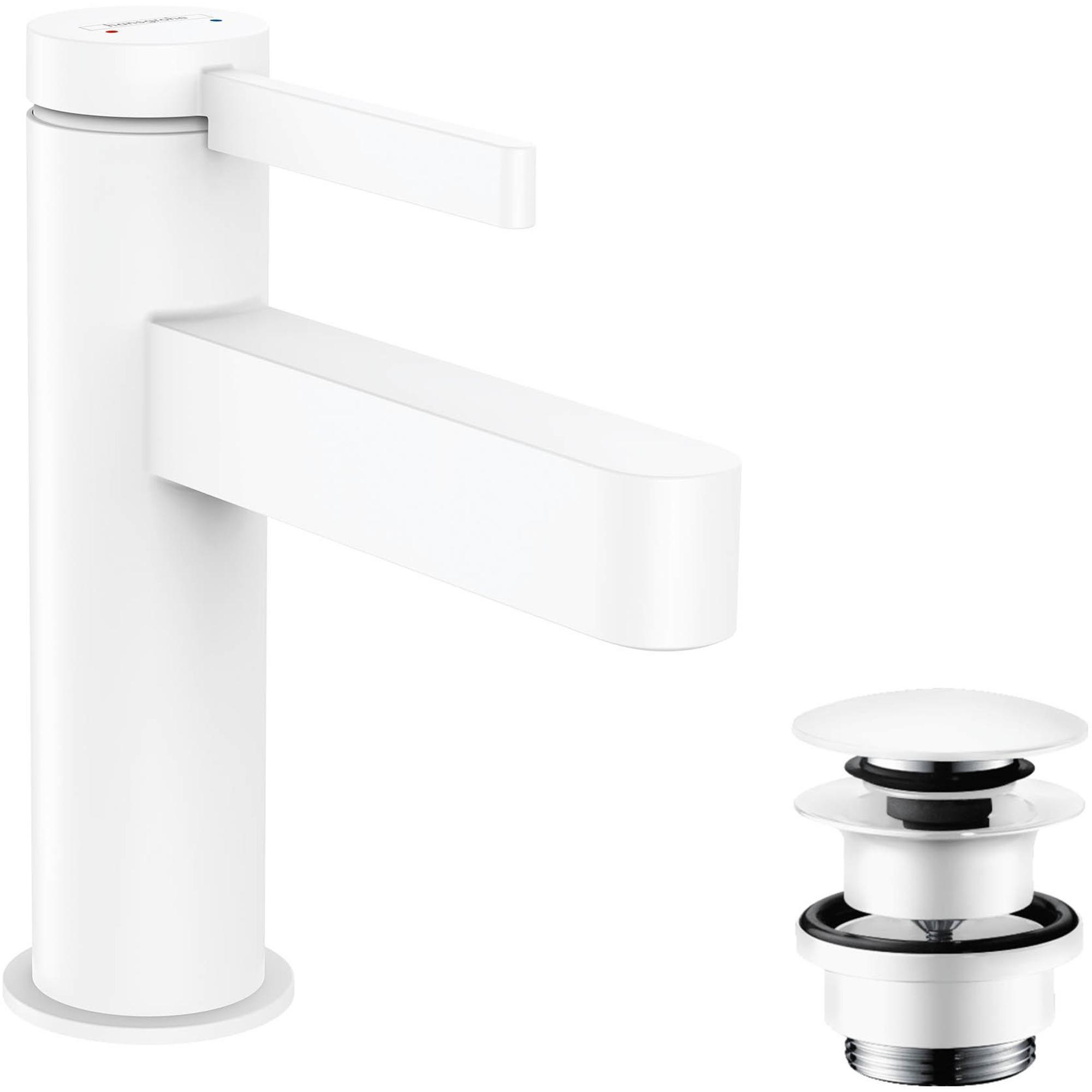 De Finoris 100 ééngreeps wastafelmengkraan in mat wit met PushOpen afvoergarnituur van hansgrohe maakt een echt statement met zijn slanke, geometrische vorm en lange vleugelgreep. Het elegante design past bijzonder goed in een puristische badkamersfeer en maakt een expressief statement met de makkelijk te reinigen, mat witte finish. Laat uw persoonlijke stijl tot uitdrukking komen met het kraanassortiment van Finoris.