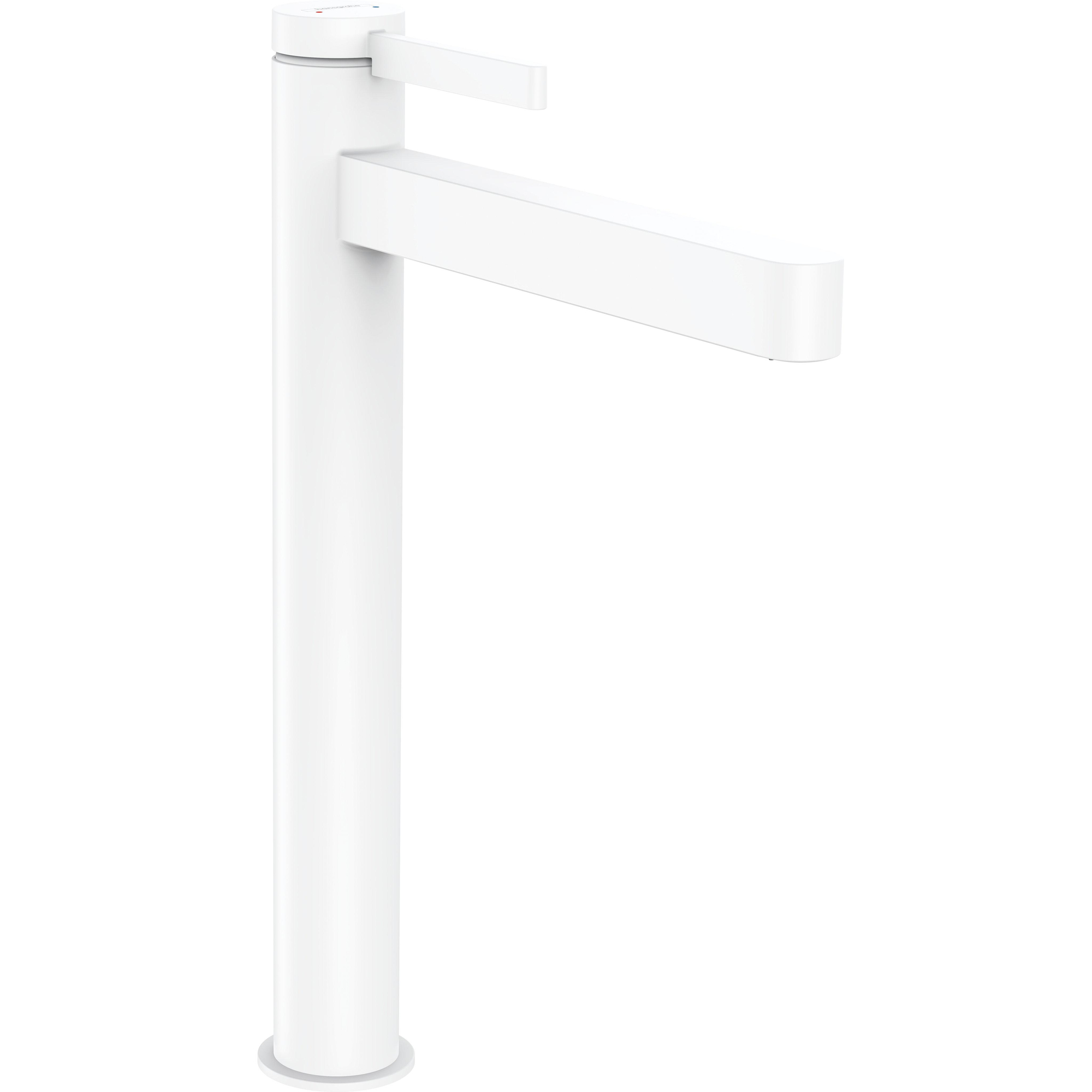 Zeer hoge ééngreeps mengkraan in mat wit voor waskommen - PushOpen afvoer inbegrepen