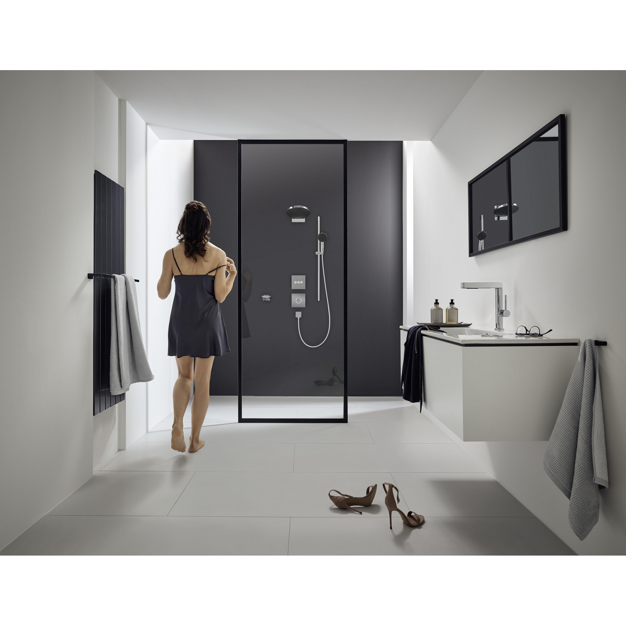 Het puristische ontwerp met de briljante, gemakkelijk te reinigen chroomfinish maakt een onvergetelijke badkamerstatement. Zo goed als nieuw, en langer: Kalkresten kunnen eenvoudig van de flexibele siliconen noppen van de douche worden afgeveegd (QuickClean).