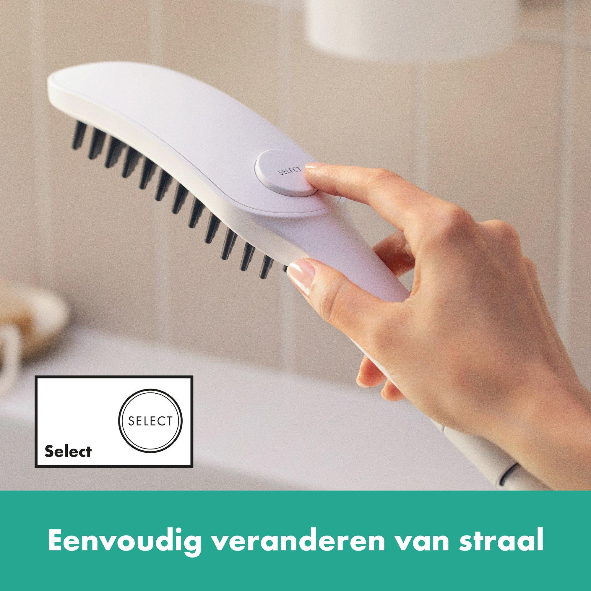 Op de kop helpt de gerichte straal de klauwen precies schoon te maken. Het verwijdert vuil tussen de klauwen. De zachte straalopening voor de poten gebruikt het voorste deel van de douche en reinigt efficiënt. De opening voor de vacht is de lengte van de gehele straalplaat. Het is een luxe waterstraal die je harige vriend verwent. De extra lange, flexibele spuitkoppen brengen het water diep in de ondervacht om shampoo effectief en grondig uit te spoelen en kan huidirritaties verminderen. Wissel tussen de stralen met een knop van hansgrohe-technologie