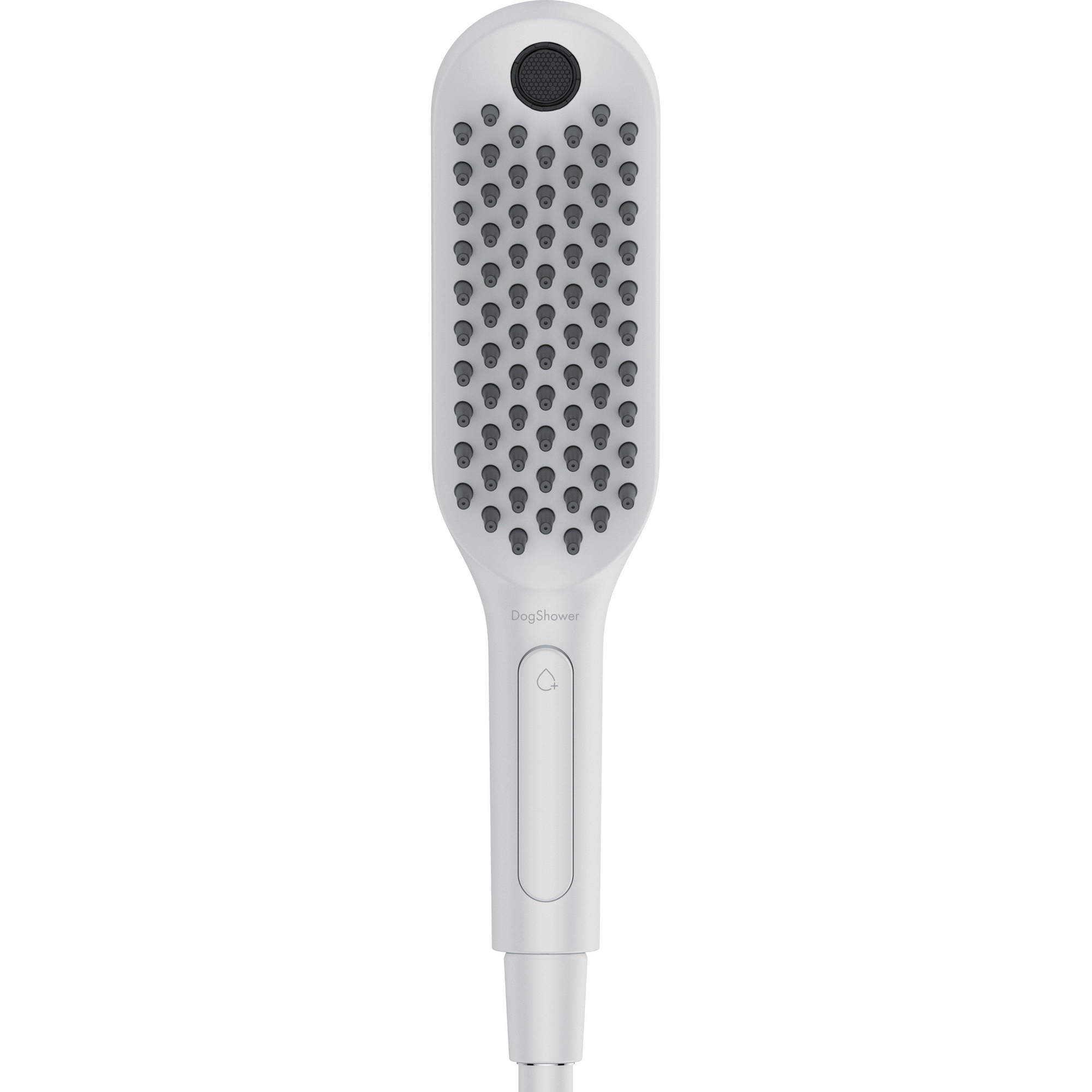 De DogShower met drie straalsoorten van hansgrohe is ontworpen door de specialisten van hansgrohe om in bad gaan een ontspannen ervaring voor honden en hun verzorgers te maken. De speciale kop met flexibele spuitstukken is anatomisch vormgegeven en past zich aan het lichaam van een hond aan en de gecoördineerde straalopeningen leveren altijd de juiste hoeveelheid water.