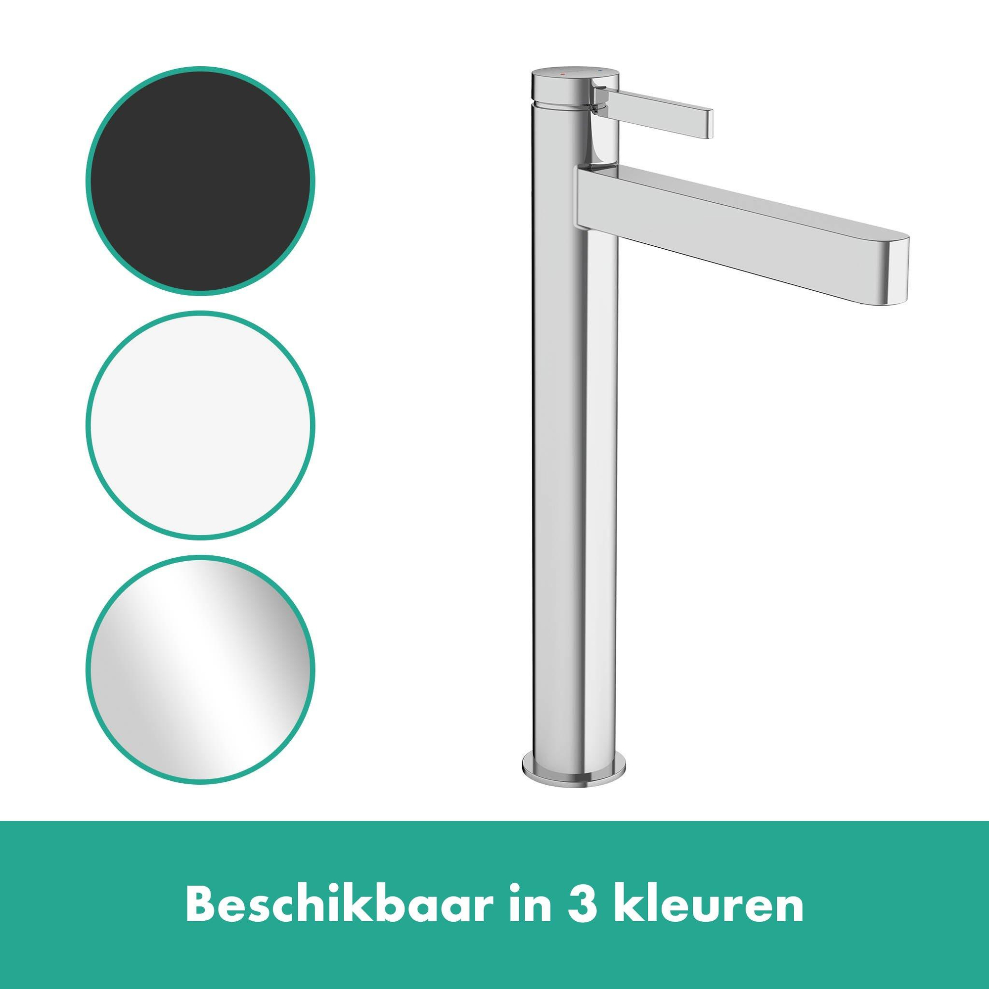 Producten uit het Finoris-assortiment maken het u gemakkelijker in de badkamer en geven u tegelijkertijd meer mogelijkheden met hun slimme ideeën. Ze combineren de expertise van hansgrohe op het vlak van producten en water, voor makkelijk en flexibel watergebruik. Naast de FinishPlus finish in mat zwart is de douchemengkraan verkrijgbaar in mat wit of stralend chroom. Zo kunt u zelf uw gewenste badkamer ontwerpen.