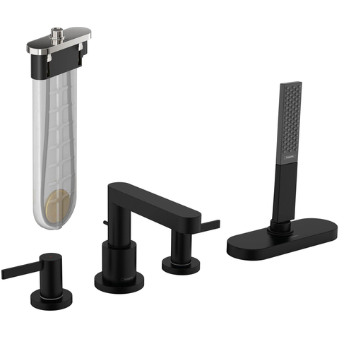 Hansgrohe Finoris afdekset 4-gats badkraan met s-box mat zwart