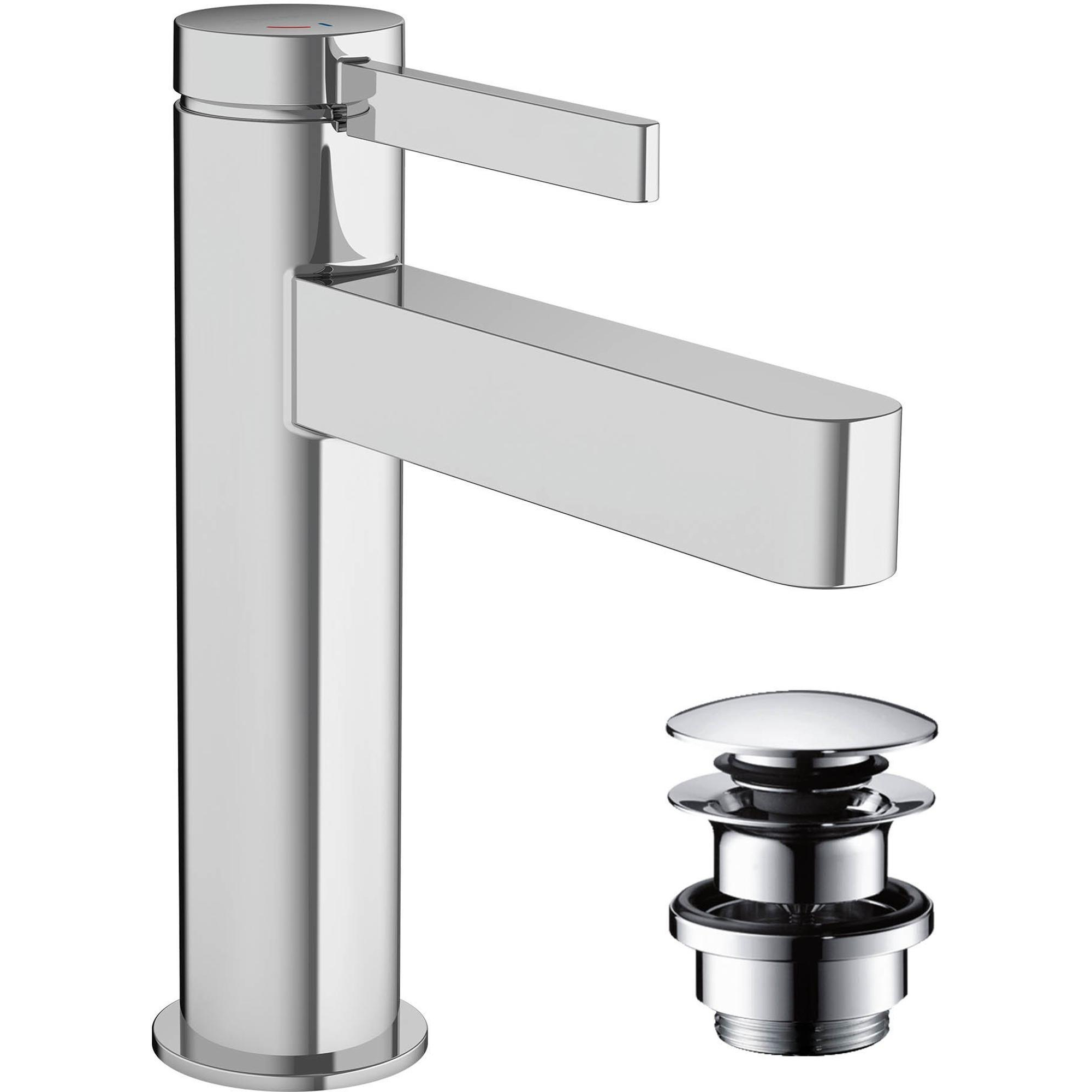 De Finoris 110 ééngreeps wastafelmengkraan met PushOpen afvoergarnituur van hansgrohe maakt een echte statement met zijn slanke, geometrische vorm en lange vleugelgreep. Het elegante design past bijzonder goed in een puristische badkamersfeer. De briljante, eenvoudig te reinigen chroomfinish zet een expressief accent. Met het kraanassortiment van Finoris kunt u uw persoonlijke stijl tot uitdrukking laten komen.