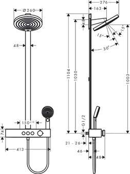 Hansgrohe Pulsify showerpipe 26cm 2jet planchet 40cm chroom