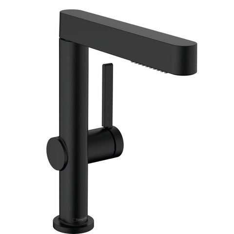 De Finoris 230 ééngreeps wastafelmengkraan in mat zwart met uittrekbare vuistdouche van hansgrohe maakt indruk met zijn strakke, geometrische design en talrijke handige functies. De wastafel is het hart van uw badkamer. Het leven is onstuimig in de badkamer en er zijn altijd nieuwe uitdagingen. Het is dus prettig als de wastafel een echte teamspeler is, die u ondersteunt met revolutionaire ideeën.