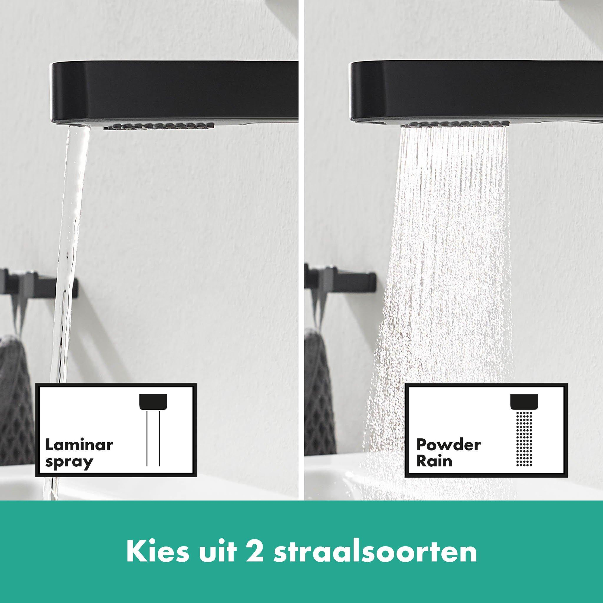 De uitloop kan bijvoorbeeld flexibel worden uitgetrokken tot een lengte van maximaal 0,50 meter. Met de Select-knop van hansgrohe schakelt u met één druk op de knop om van de kristalheldere laminaire straal naar de straalsoort PowderRain. Dit helpt bij snel haren wassen onder de kraan, babybadjes, het uitspoelen van de wastafel, en nog veel meer. Dankzij de ingebouwde terugstelfunctie wordt de laminaire straal na het uitschakelen van de kraan weer automatisch geselecteerd - dus geen onaangename verrassingen meer.