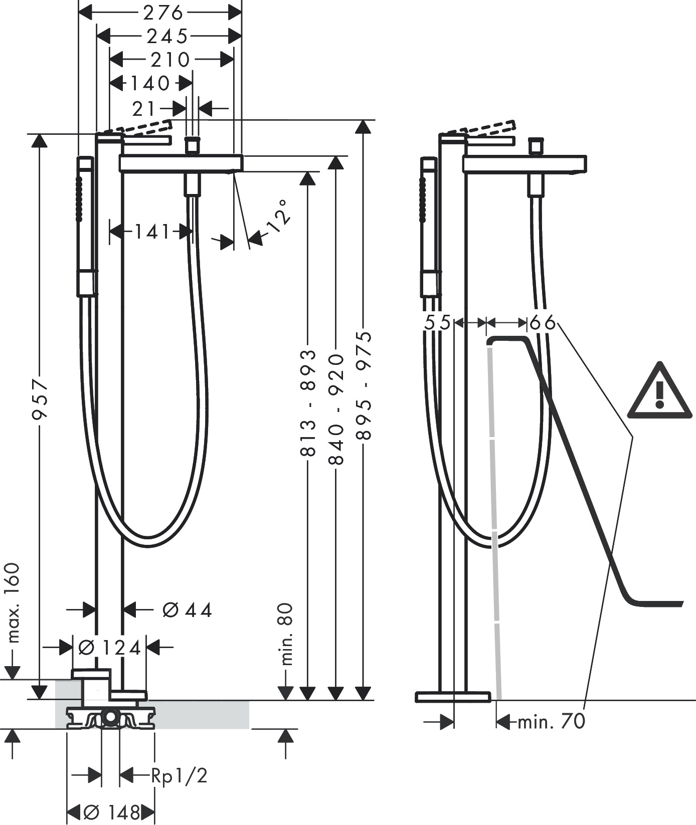 Hansgrohe Finoris badkraan vrijstaand met douchegarnituur chroom