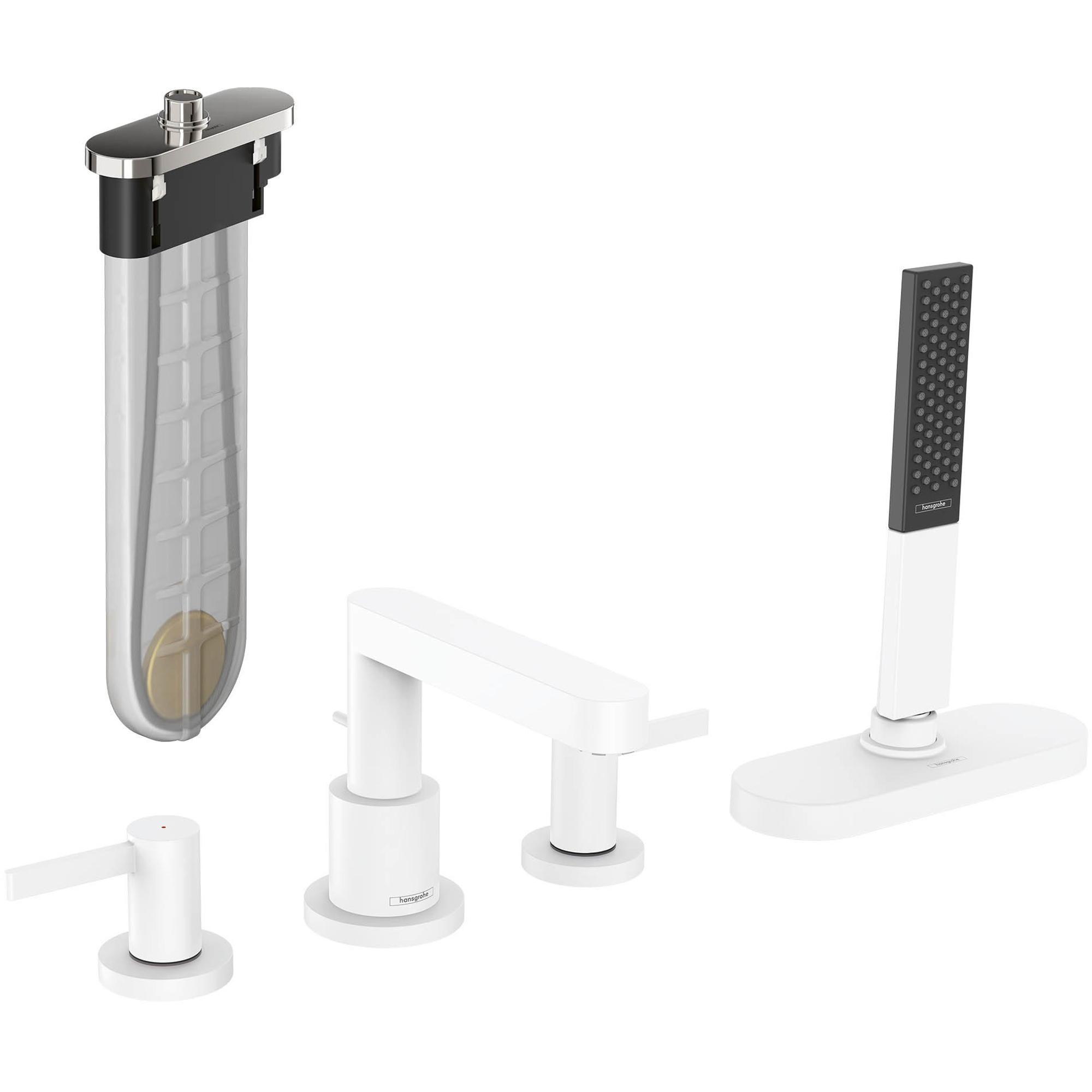 Hansgrohe Finoris afdekset 4-gats badkraan met s-box mat wit