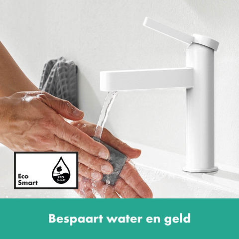 De hoge kwaliteit benadrukt keer op keer de elegante vorm. De vleugelgreep bedient bijvoorbeeld een soepel lopend keramisch mengsysteem van hansgrohe. Het watervolume en de temperatuur worden voortdurend en betrouwbaar aangepast met één aanraking. De slanke kraanvorm vloeit over in een rustige en kristalheldere laminaire straal, waardoor een harmonieus geheel ontstaat. Dankzij de hansgrohe EcoSmart-technologie is de designkraan uiterst waterbesparend. Hij verbruikt maximaal 5 l/min., zelfs bij hoge waterdruk.