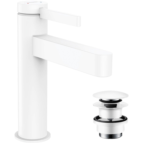 Hansgrohe Finoris wastafelkraan 110 pop-up plug mat wit