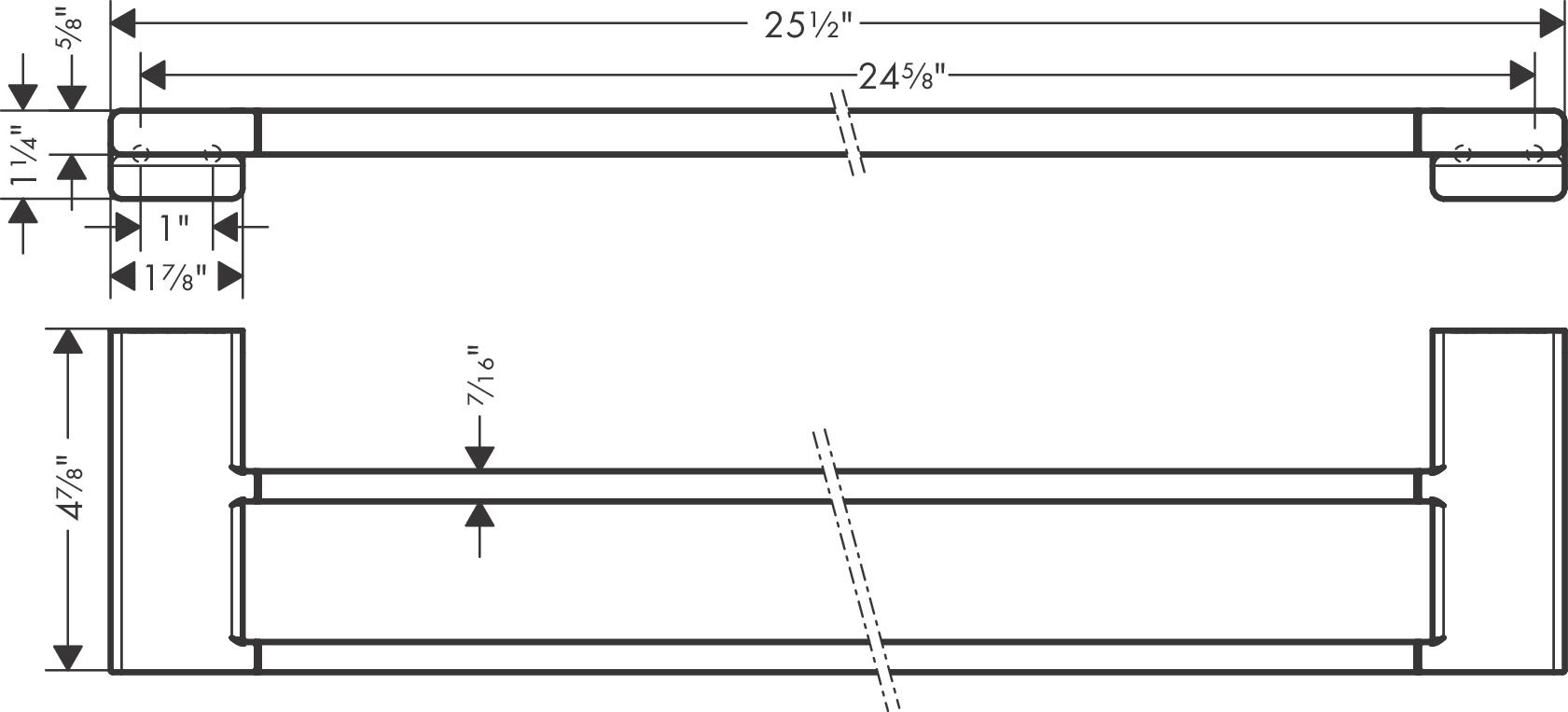 Het badlakenrek wordt met in totaal vier schroeven veilig op de wand bevestigd. De gatafstand is 26 mm aan beide zijden.