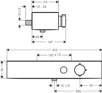 Het buitenoppervlak van de thermostaatkraan wordt tijdens gebruik niet heet - het blijft altijd aangenaam koel aan de buitenkant (CoolContact). Voor extra veiligheid geeft de kraan pas heet water op het moment dat de drukknop is ingedrukt (SafetyStop). Tijdens de installatie kan ook een maximumtemperatuur worden ingesteld.