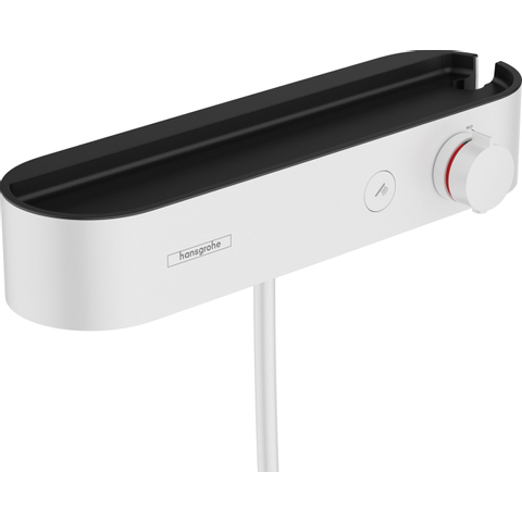 De ShowerTablet Select 400 mat wit douchethermostaat (opbouwmontage) van hansgrohe geeft u zelfs in de kleinste doucheruimtes meer ruimte, dankzij het moderne design en slimme functies - voor een nette badkamer waarin u zich goed voelt. De 400 mm brede thermostaatkraan met afgeronde hoeken fungeert als een ruim planchet voor uw persoonlijke verzorgingsproducten. De verzonken wandmontage geeft u extra bewegingsvrijheid. De geïntegreerde houder aan de zijkant houdt de douchekop altijd binnen handbereik