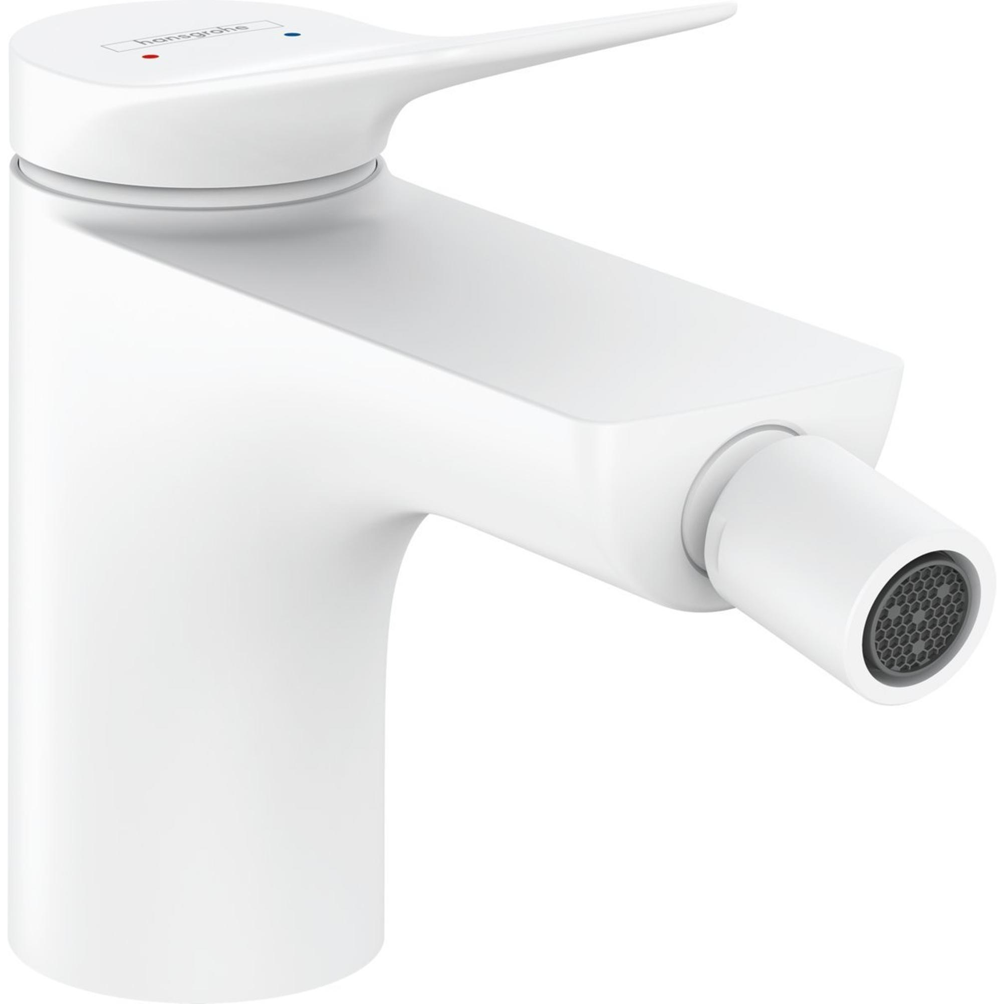 Elegantie en functionaliteit: Eéngreeps bidetkraan in mat wit met pop-up afvoergarnituur van hansgrohe