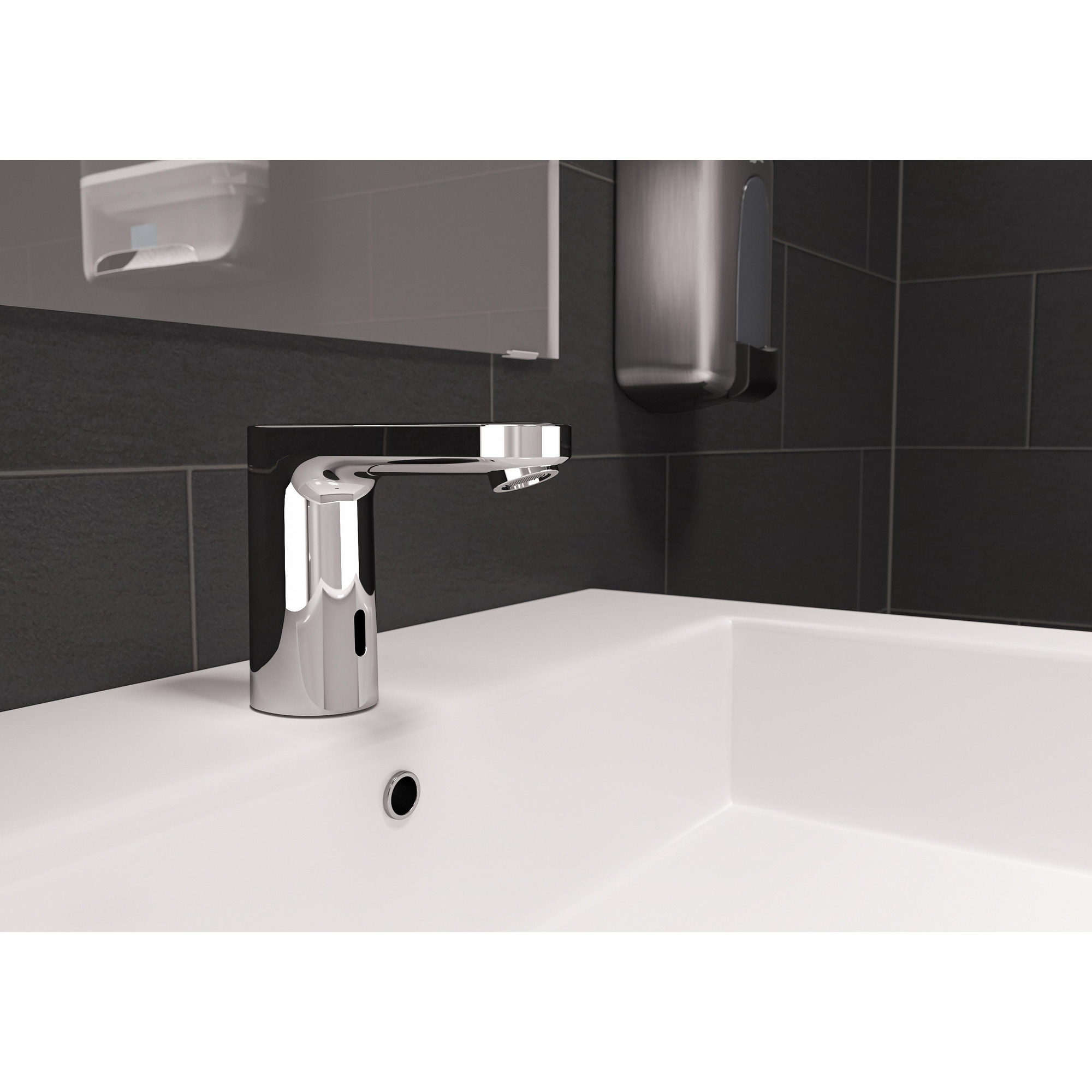 De Vernis Blend elektronische wastafelmengkraan voor koud water en bediening via batterij is de professionele oplossing voor openbare en semi-openbare sanitaire ruimtes. De sensormengkraan uit de Vernis Blend-serie van hansgrohe is altijd de beste keuze wanneer veilige hygiëne, permanent betrouwbare werking en lage bedieningskosten voorop staan. Voor koud of centraal voorgemengd water. Een aparte bedieningshendel is niet nodig. U kunt dus uw handen wassen zonder iets aan te raken. De hygiëne is verbeterd, met name op drukbezochte plaatsen, zoals openbare sanitaire ruimtes in restaurants, of scholen, ziekenhuizen en verpleeghuizen.