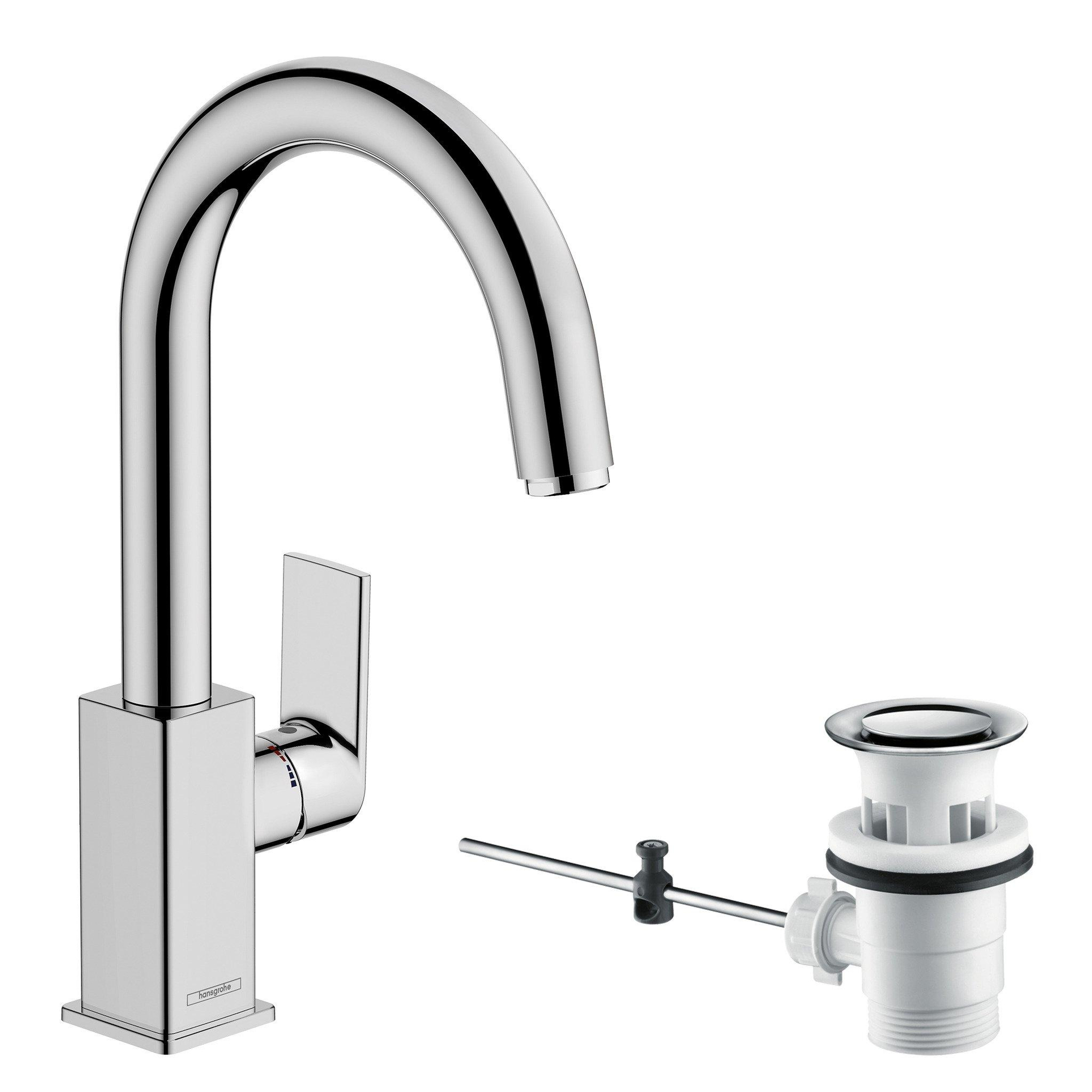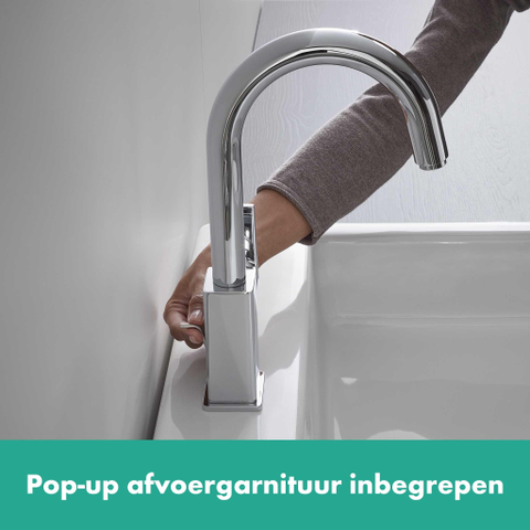 De Vernis Shape ééngreeps wastafelmengkraan 200 met pop-up afvoergarnituur maakt indruk op gebruikers door de mooie mix van ronde en hoekige vormen. Het onderscheidende design maakt de Zinc-kraan de perfecte partner in de fontein, en al helemaal in moderne badkamers of gastentoiletten. Wat is er zo speciaal aan deze kraan? De interne watervoering voorkomt dat drinkwater in contact komt met het metaal van de kraan. Comfortabel: De afstand tussen de uitloop en de wastafel zorgen voor genoeg gebruiksruimte (ComfortZone 100). De robuuste kunststof pop-up afvoergarnituur wordt meegeleverd en kan makkelijk met één hand geopend en gesloten worden. De Vernis Shape kranen brengen tijdloos design en de bewezen hansgrohe gebruiksvriendelijkheid de badkamer binnen en zijn beschikbaar voor een aantrekkelijke prijs.