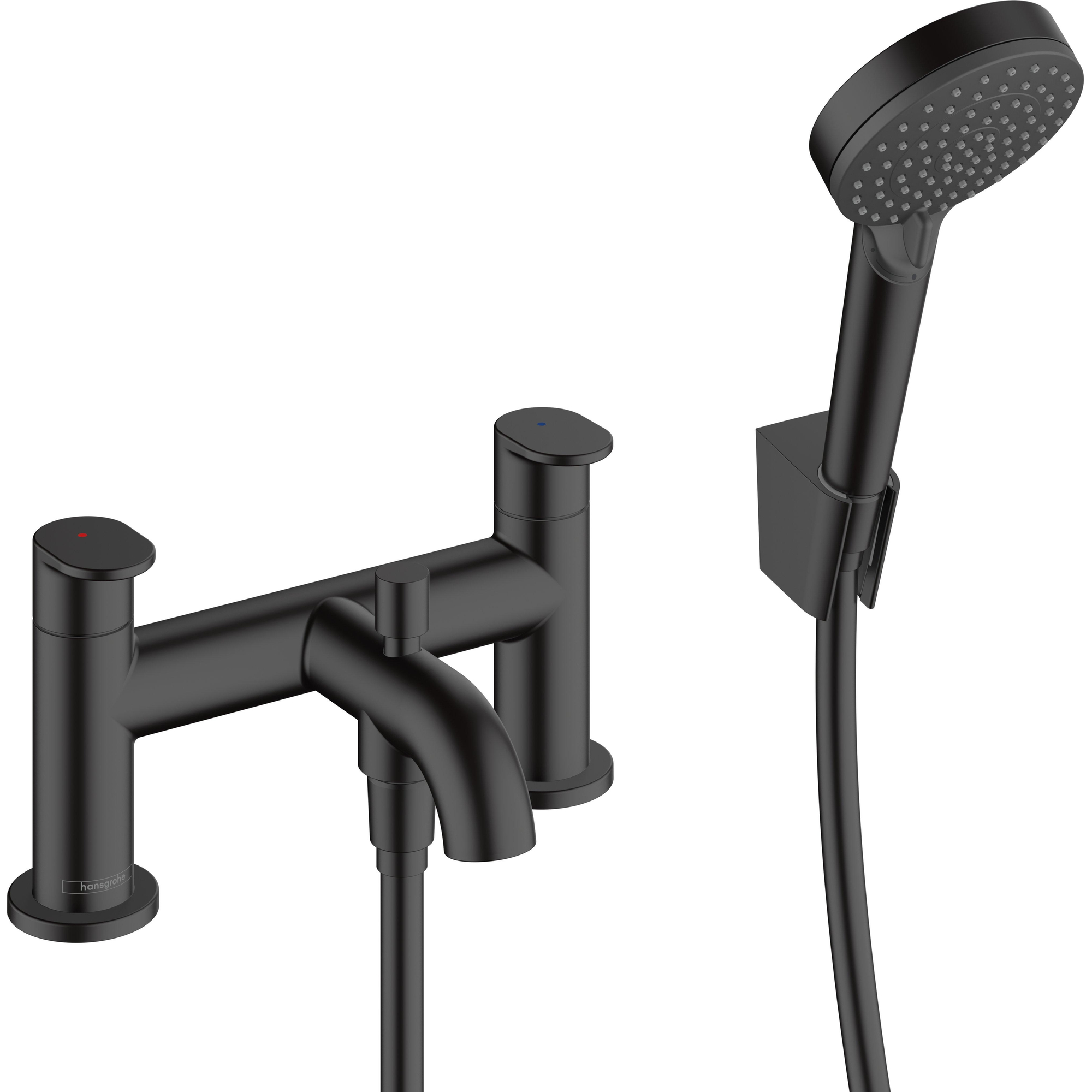 Met de tijdloze elegantie en finish in trendy mat zwart is de hansgrohe Vernis Blend 2-gats badrandmengkraan met de Vernis Blend Vario douchekop en douchehouder de perfecte kraan voor badoplossingen bij een beperkt budget. De badrandmengkraan is uitermate geschikt voor stijlvolle badkamerrenovaties, omdatde brugmengkraan een moderne interpretatie is van het traditionele bedieningsconcept. De stijlvolle handdouche met twee straalsoorten is echt plezierig om te gebruiken. De krachtige Rain straal biedt een frisse boost voor het hele lichaam. De IntenseRain straal revitaliseert en is ideaal om shampoo uit het haar te spoelen. snel wisselen De straalsoorten kunnen afgewisseld worden door eenvoudig aan de straalplaat aan de douchekop te draaien.