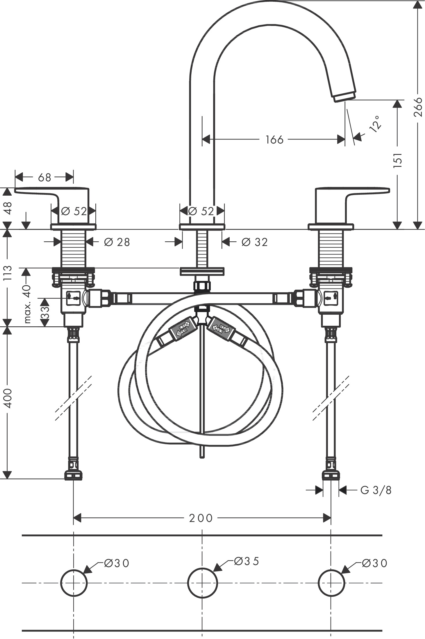 Met de subtiele elegantie en harmonieus design is de hansgrohe Vernis Blend 3-gats wastafelmengkraan met pop-up afvoergarnituur geschikt voor alle badkamers. De waterhoeveelheid en temperatuur kunnen ingesteld worden met behulp van twee aparte, gebruiksvriendelijke en ergonomisch gevormde grepen die links en rechts van de lange uitloop geplaatst zijn. De robuuste kunststof pop-up afvoergarnituur wordt meegeleverd en kan makkelijk met één hand geopend en gesloten worden. De Vernis Blend kranen brengen tijdloos design en de bewezen hansgrohe gebruiksvriendelijkheid de badkamer binnen en zijn beschikbaar voor een aantrekkelijke prijs.