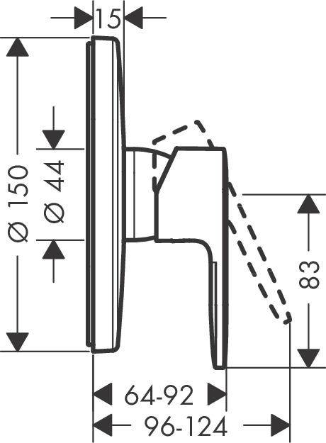 Hansgrohe Vernis afdekset douchekraan met hendel mat zwart
