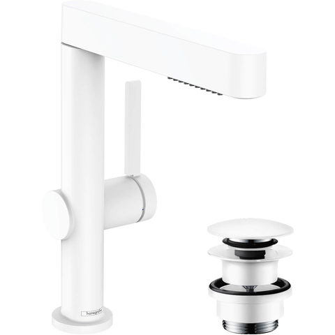 Hansgrohe Finoris wastafelkraan 230 met douche pop-up plug mat wit