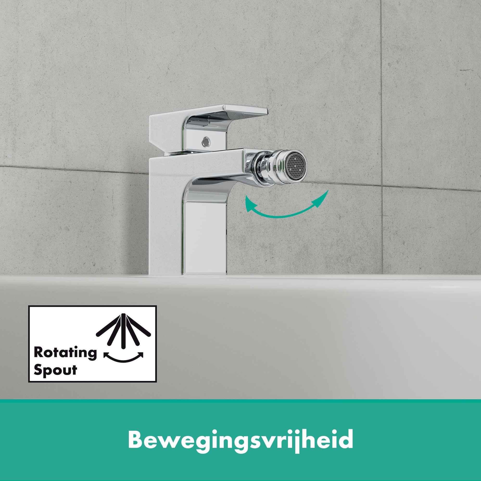 De hansgrohe Vernis Shape ééngreeps bidetmengkraan met pop-up afvoergarnituur is een combinatie van onderscheidend design en praktische kenmerken voor een aantrekkelijke prijs. De mengkraan heeft een straalvormer met meerdere instellingen voor toegevoegde gebruiksvriendelijkheid. Nog een pluspunt: Het water wordt verrijkt met lucht voor een volle waterstraal (AirPower). Dit zorgt voor vollere en lichtere druppels die fluweelzacht aanvoelen en minder spatten veroorzaken. De Vernis Shape kranen brengen tijdloos design en bewezen hansgrohe kwaliteit de badkamer binnen, zelfs bij een beperkt budget.