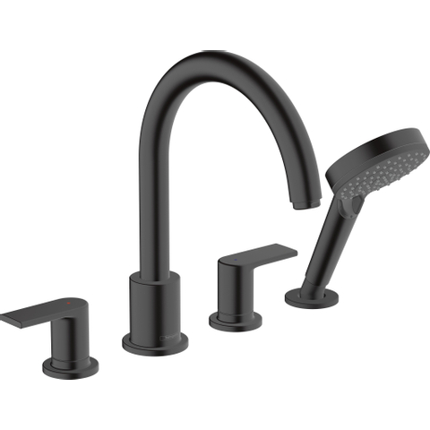 De hansgrohe Vernis Shape 4-gats badrandmengkraan en douchekop maken indruk op gebruikers dankzij een moderne look en brengen onderscheidend design, gebruiksvriendelijkheid en rijkelijk douchen naar het bad. De kraan in trendy mat zwart past uitstekend bij moderne architectuur. Met een doorstroomhoeveelheid van 25,3 l/min is het bad in no-time gevuld. En tot max. 17,9 l/min (bij 3 bar) zorgt de 100 mm Vernis Blend handdouche voor het plezier, comfort en gemak waar hansgrohe baden en douches bekend om staan - allemaal voor een geweldige prijs.