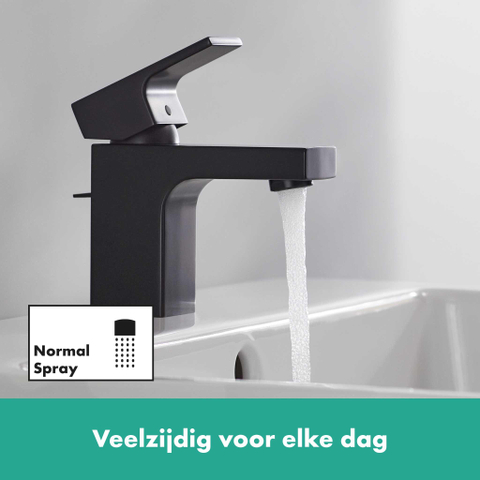 De waterhoeveelheid en temperatuur kunnen ingesteld worden met de gebruiksvriendelijke, ergonomisch gevormde greep die het hoogwaardig hansgrohe keramisch mengsysteem bedient en niet losraakt, ook niet bij veelvuldig gebruik. Nog een pluspunt: Deze kraan bespaart geld en beschermt het milieu omdat de doorstroomhoeveelheid automatisch begrensd is tot 4,3 l/min, zelfs als de waterdruk hoog is (EcoSmart). Het water wordt verrijkt met lucht voor een volle waterstraal en minder gespetter (AirPower).